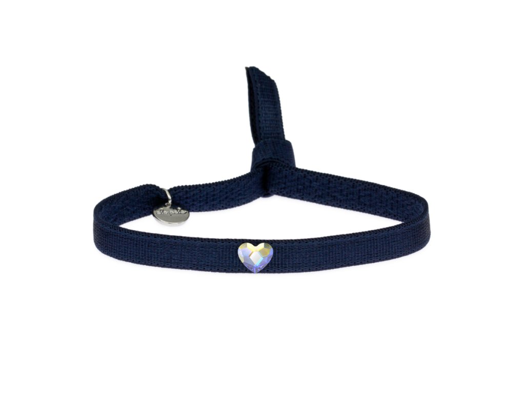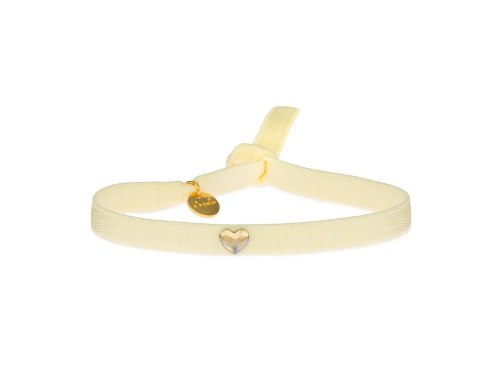 A textile ribbon bracelet with embroidered text, finished with a gold surgical steel slider ring and an acrylic heart.Looks beautiful styled in our sets or worn on its own.One...