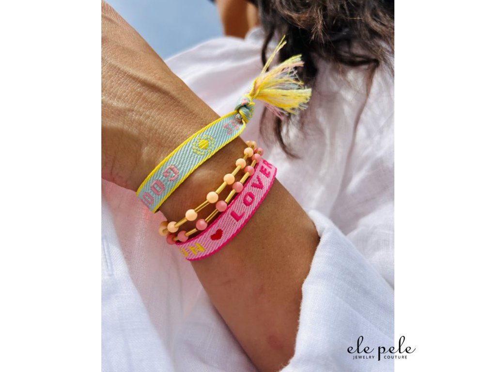 Ribbon Bracelet with adjustable slider – Good vibes turquoise-pink-yellow