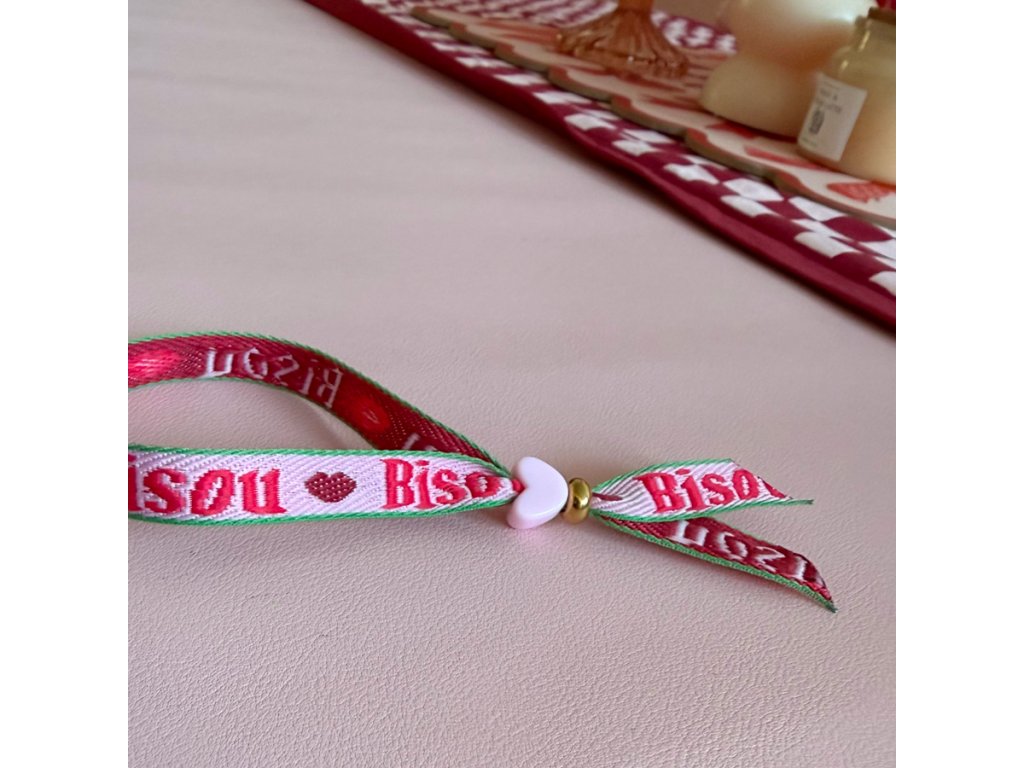 Ribbon Bracelet with Heart – Adjustable Slider - BISOU 💋