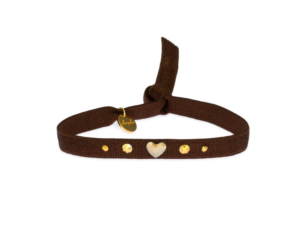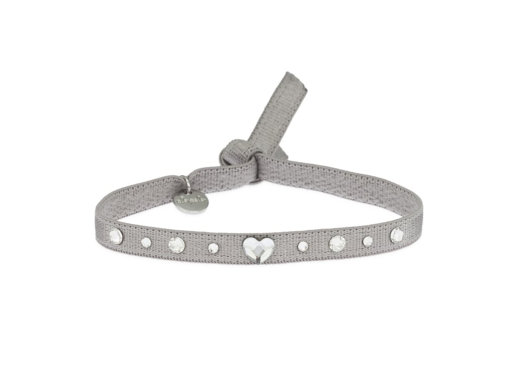 A textile ribbon bracelet with embroidered text, finished with a gold surgical steel slider ring and an acrylic heart.Looks beautiful styled in our sets or worn on its own.One...