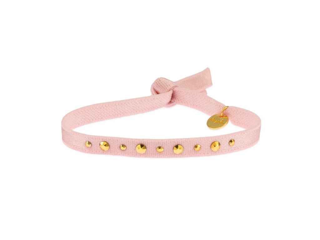 A textile ribbon bracelet with embroidered text, finished with a gold surgical steel slider ring and an acrylic heart.Looks beautiful styled in our sets or worn on its own.One...