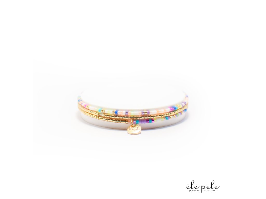 All three bracelets are strung on a comfortable elastic cord and finished with the original Ele Pele logo. Perfect for layering or wearing solo.