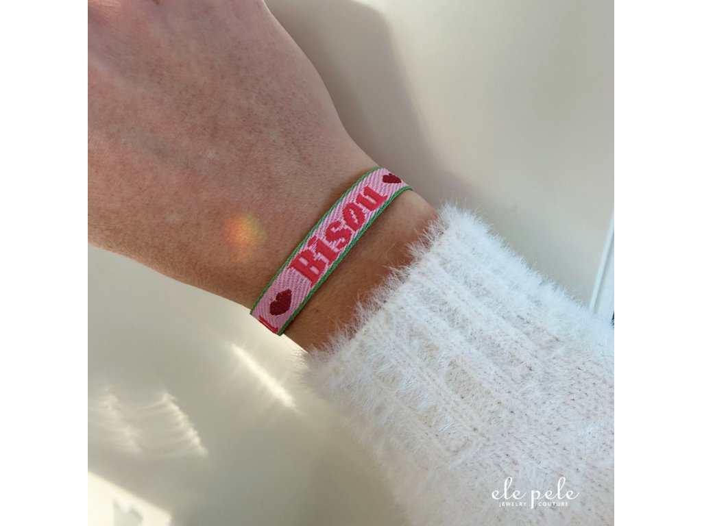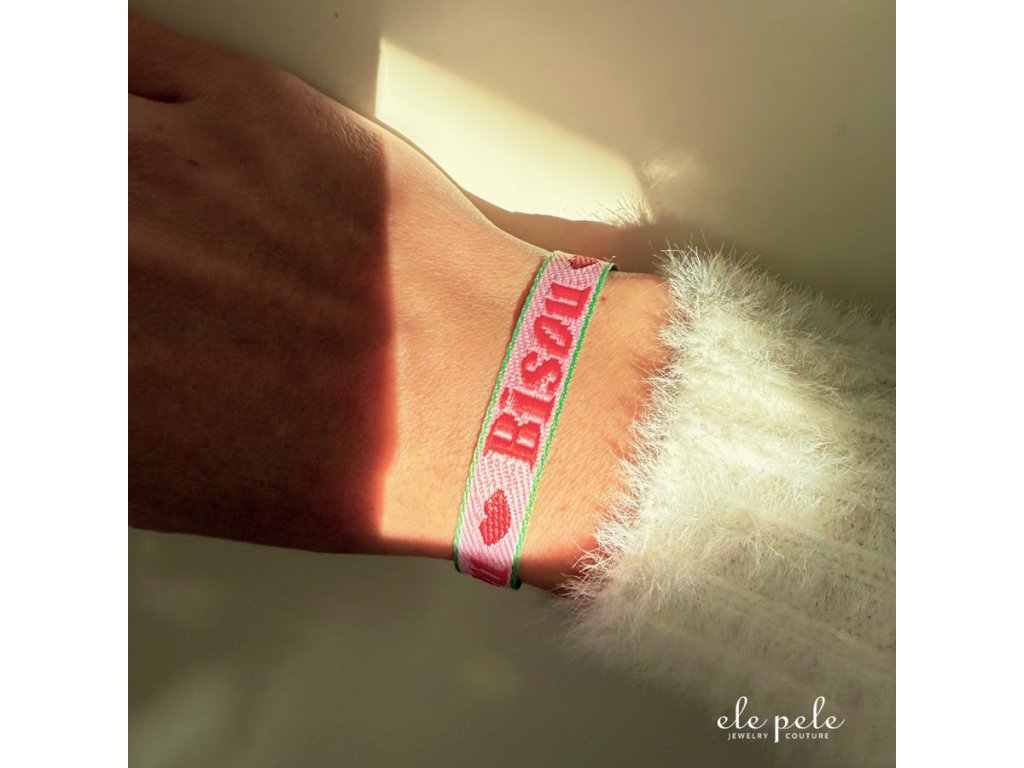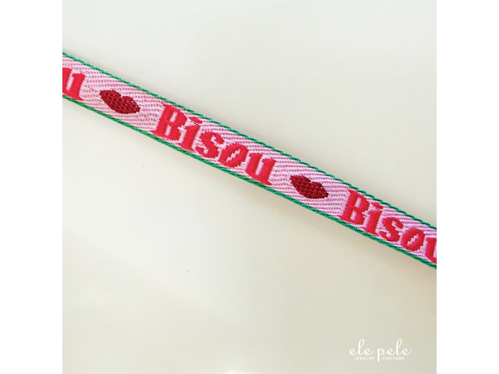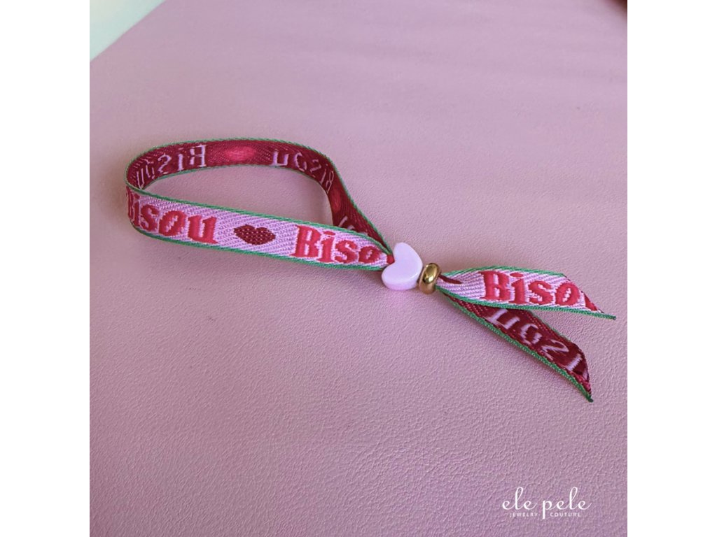 Náramek stuha s kroužkem a srdíčkem - BISOU 💋