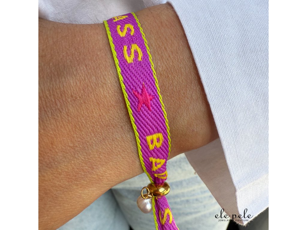 Náramek stuha se stahovacím kroužkem - Badass purple