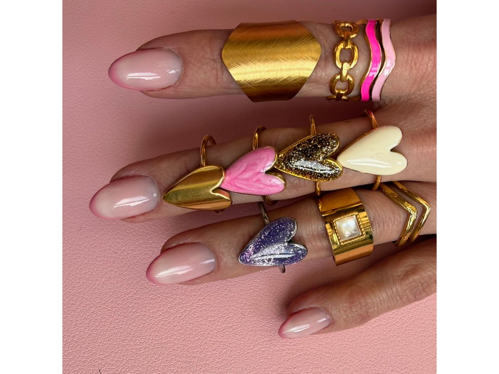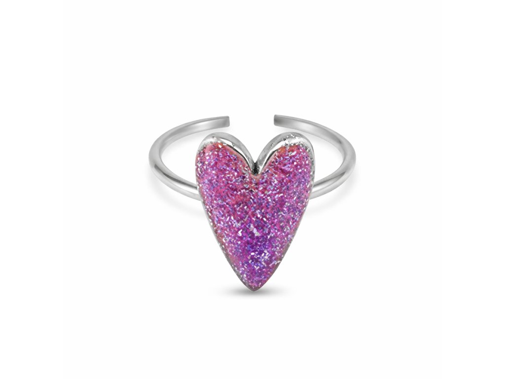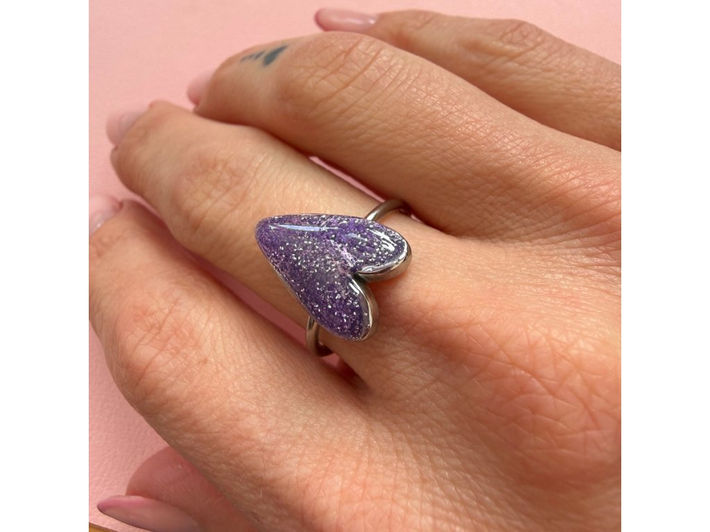 Prsten z chirurgické oceli - Heart silver purple sparkle