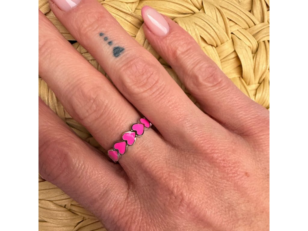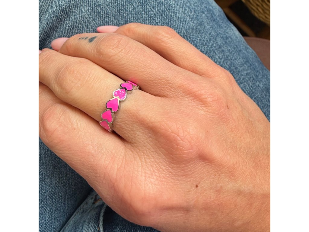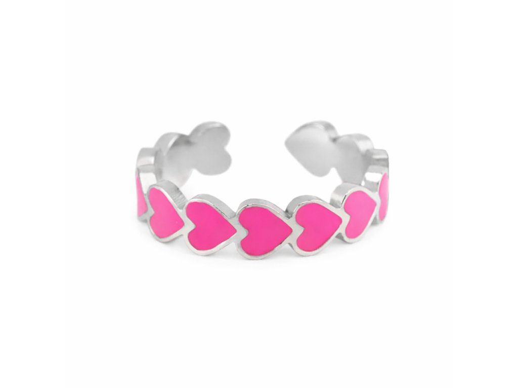 Prsten z chirurgické oceli - Hearts neon pink silver