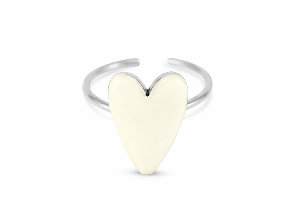 Prsten z chirurgické oceli - Silver heart white