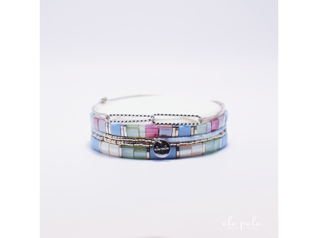 Díky pružné gumičce se snadno nasazují a pohodlně nosí. Dokonalé jako sada nebo v kombinaci s dalšími kousky z Ele Pele kolekcí.