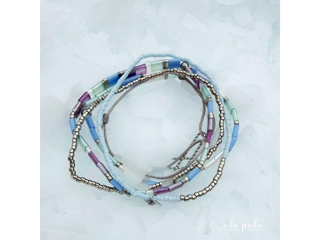- Náramky navlečené na silikonové gumičce jsou ze skla a nejsou vhodné do vody, na sport či do sauny.