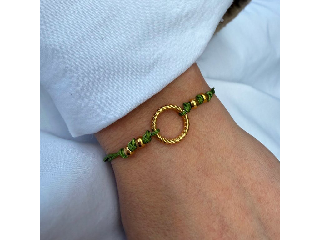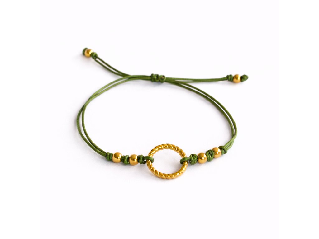 Náramek má posuvný uzlík, díky kterému jej snadno utáhnete přesně podle potřeby. Na každém konci šňůrky je kulička z chirurgické oceli pro elegantní zakončení.